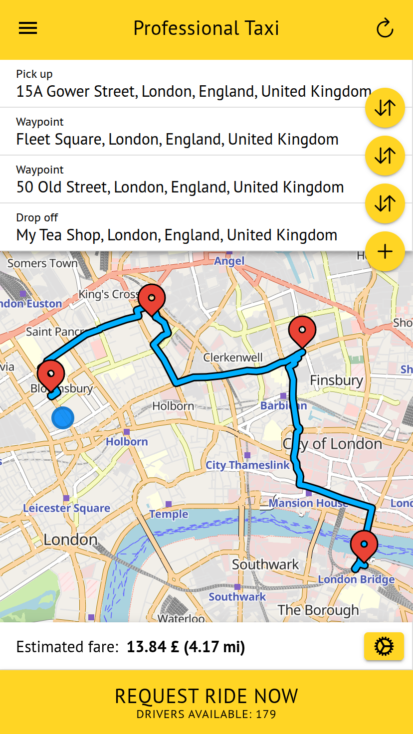 Using our state-of-the-art routing system your clients can find out an estimated fare for routes of any complexity